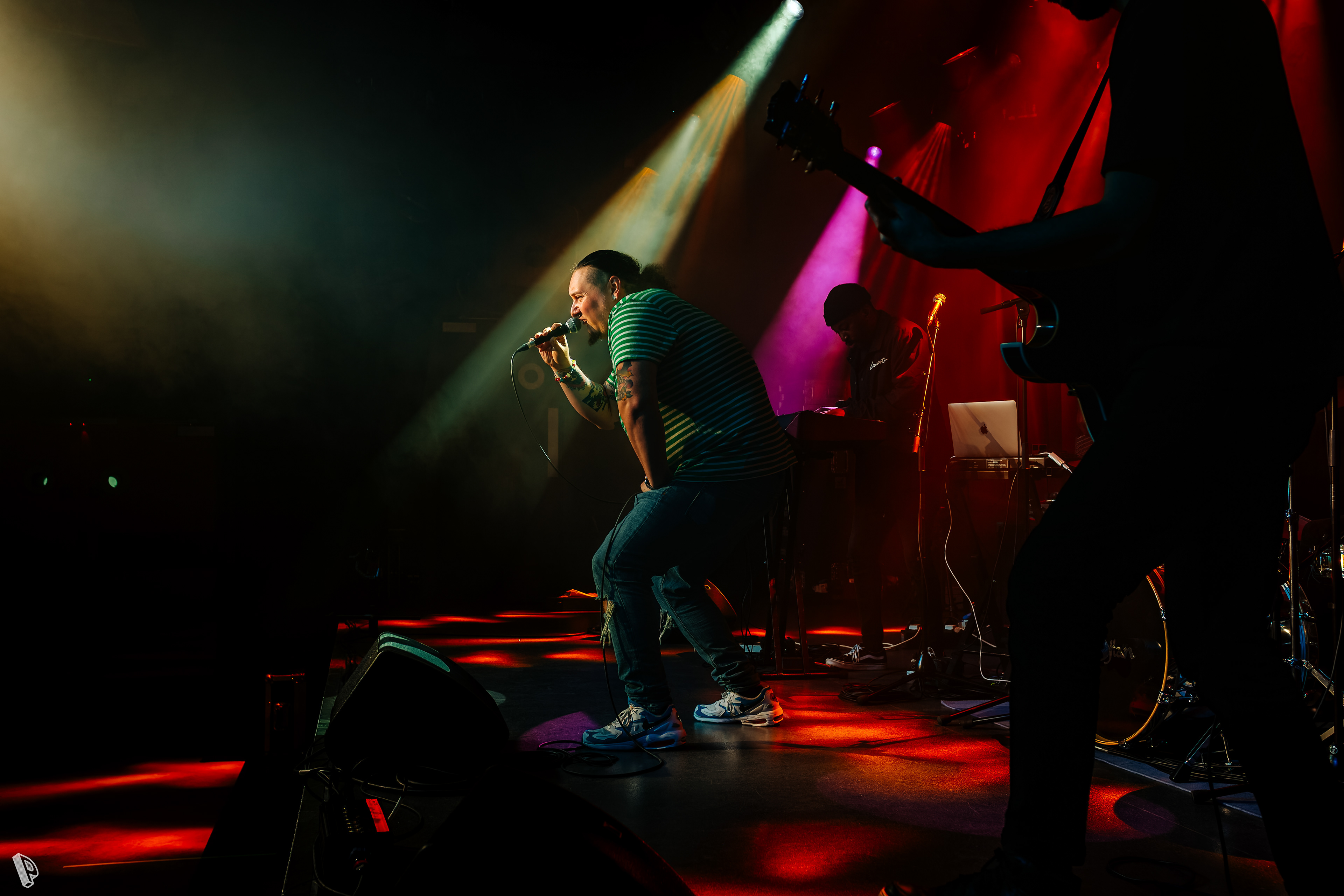 Whilst shooting still photos for a live music video recording, I was captivated by the stage lights and shadows and their interaction with the artists involved.
